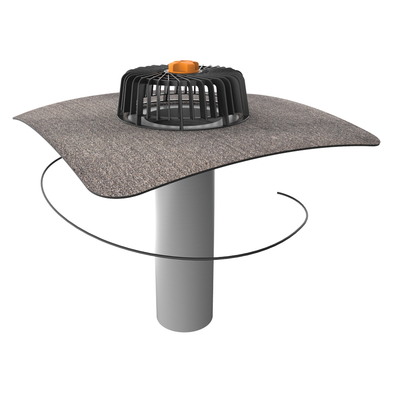 4. Jednostěnná vyhřívaná střešní vpust s integrovanou bitumenovou manžetou
