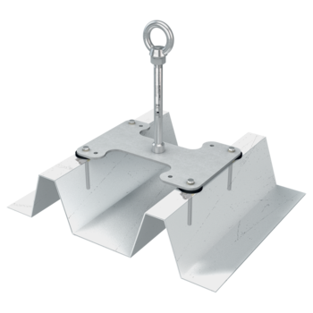 Nerezový kotvicí bod pro trapézový plech osazený v pozitivním i negativním směru. Rozměr základny 290 x 200 mm, průměr sloupku 16 mm. Instalace probíhá pomocí čtyř speciálních sklopných kotev z povrchu střechy. Určeno pro trapézový plech od tlouštky 0,63 mm.