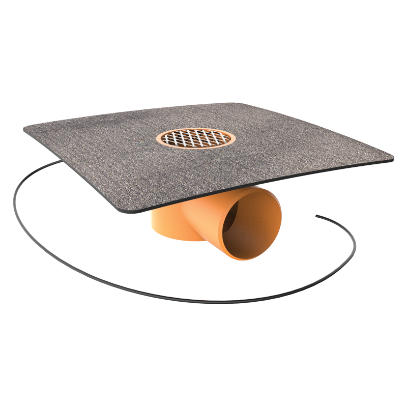- Vodorovná vyhřívaná balkónová vpust s integrovanou bitumenovou manžetou